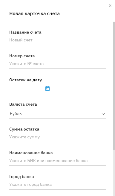 Укажите название и номер расчетного счета. Нажмите на значок календаря для указания даты, на которую укажите сумму остатка.