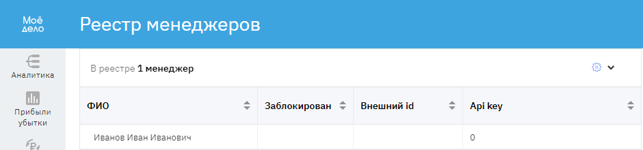В подразделе «Менеджеры» вы увидите менеджеджеров по продажам (загружаются в сервис по интеграции с 1С).