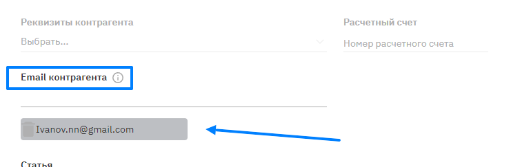 Вы можете указать e-mail контрагента, и система отправит на него уведомление об оплате: