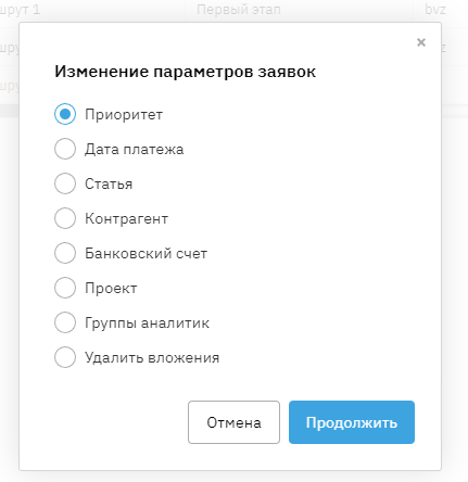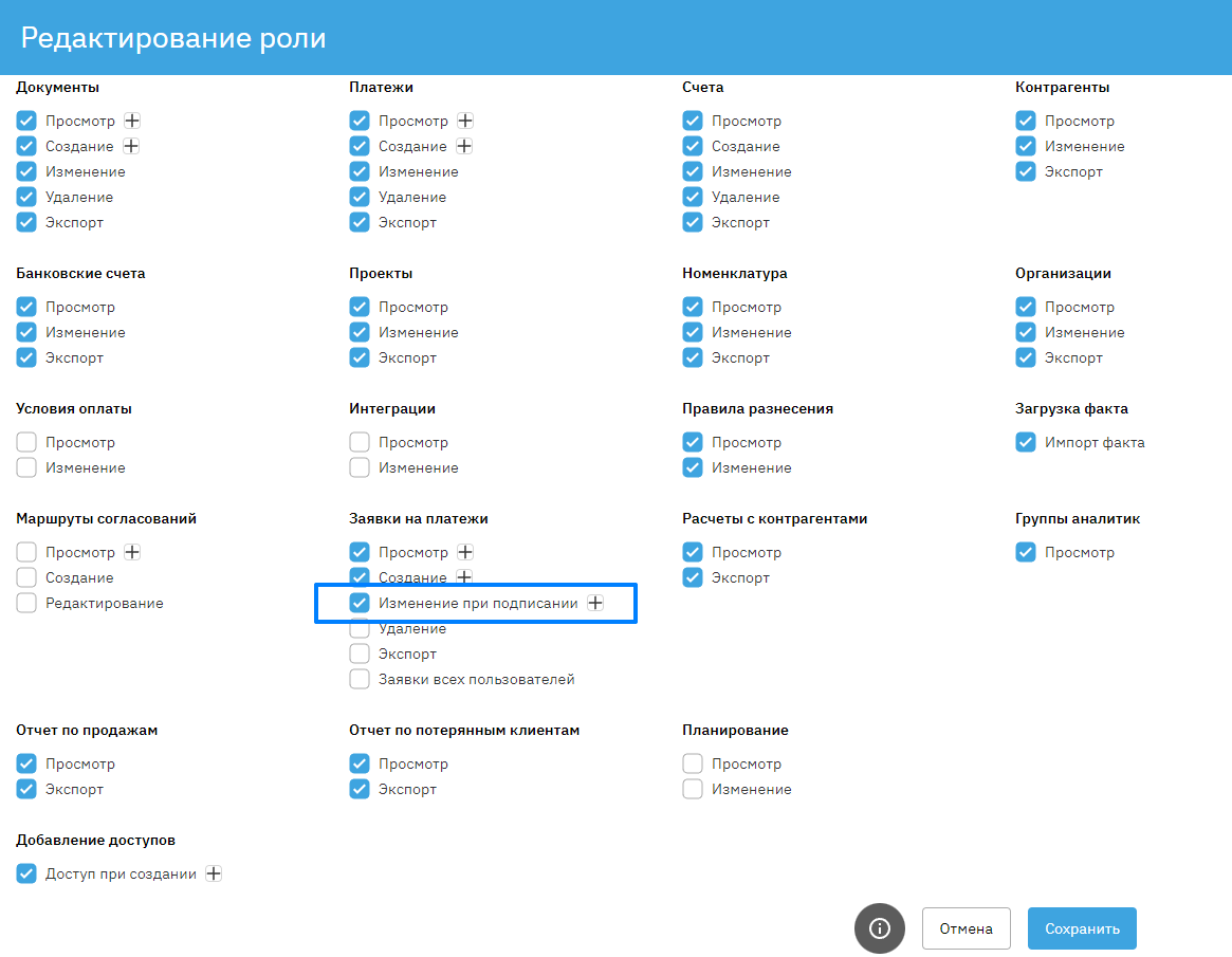 В ролевой модели есть возможность указывать для конкретного пользователя, что именно можно менять в заявках. Это экономит время и позволяет не возвращать заявку на предыдущий шаг, а сразу менять в ней контрагента, сумму или расчетный счёт.