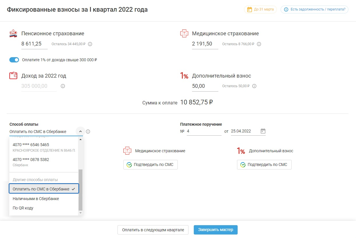 Откроется Мастер оплаты фиксированных взносов (подробнее в инструкции по мастеру).