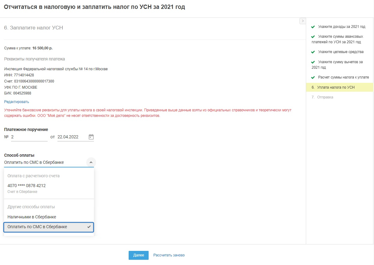 В сервисе интернет-бухгалтерии для пользователей с подключенной интеграцией с банком Сбербанк реализован дополнительный функционал по работе с платёжными поручениями: помимо отправки в банк черновиков платёжных документов, пользователям доступен функционал выполнения бюджетного платежа непосредственно из раздела «Деньги» и из событий Календаря событий до 2023 года: по оплате фиксированных взносов и налога УСН.
