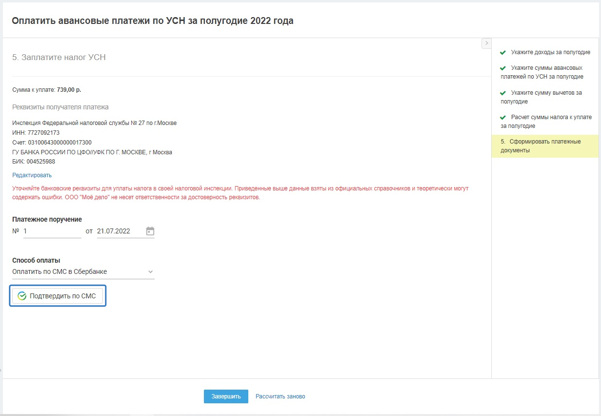 Для проведения прямого платежа необходимо нажать на кнопку «Подтвердить по СМС»: