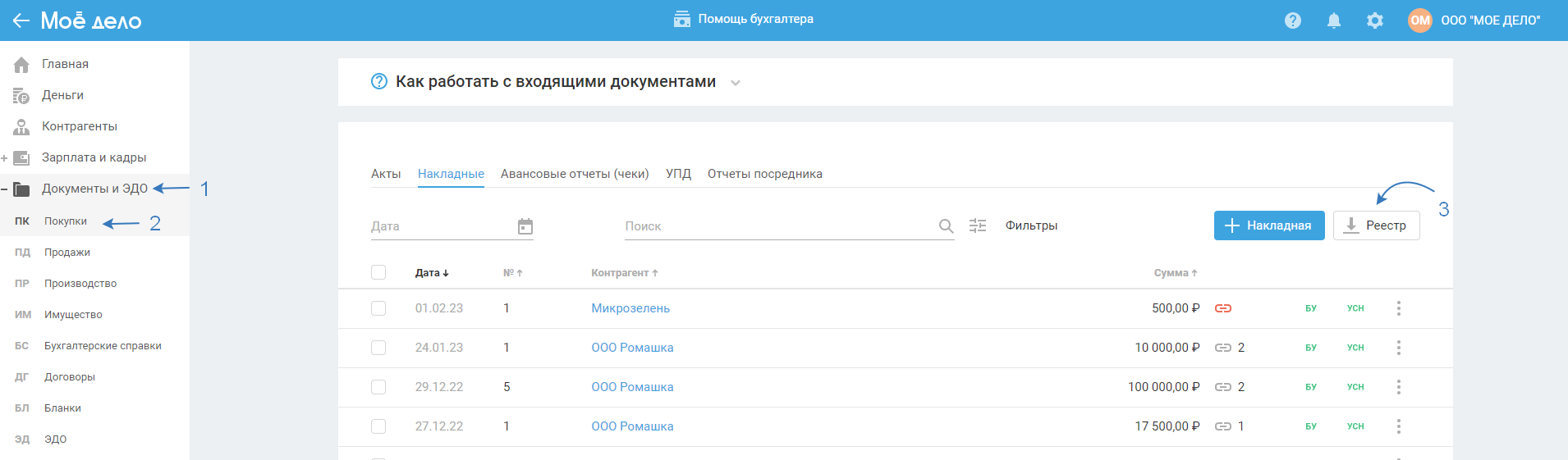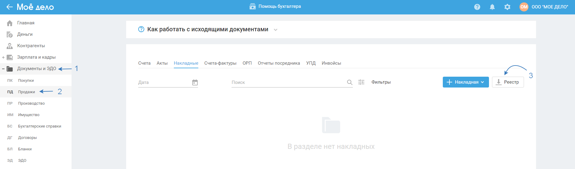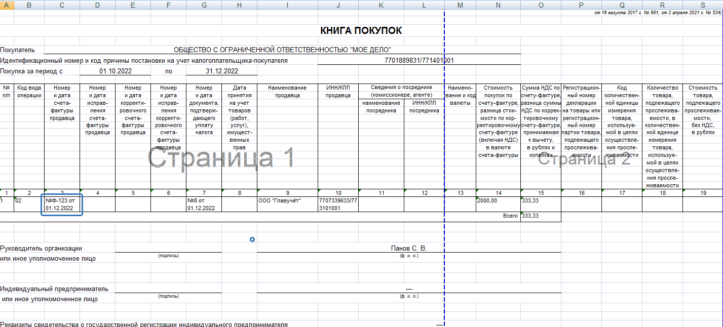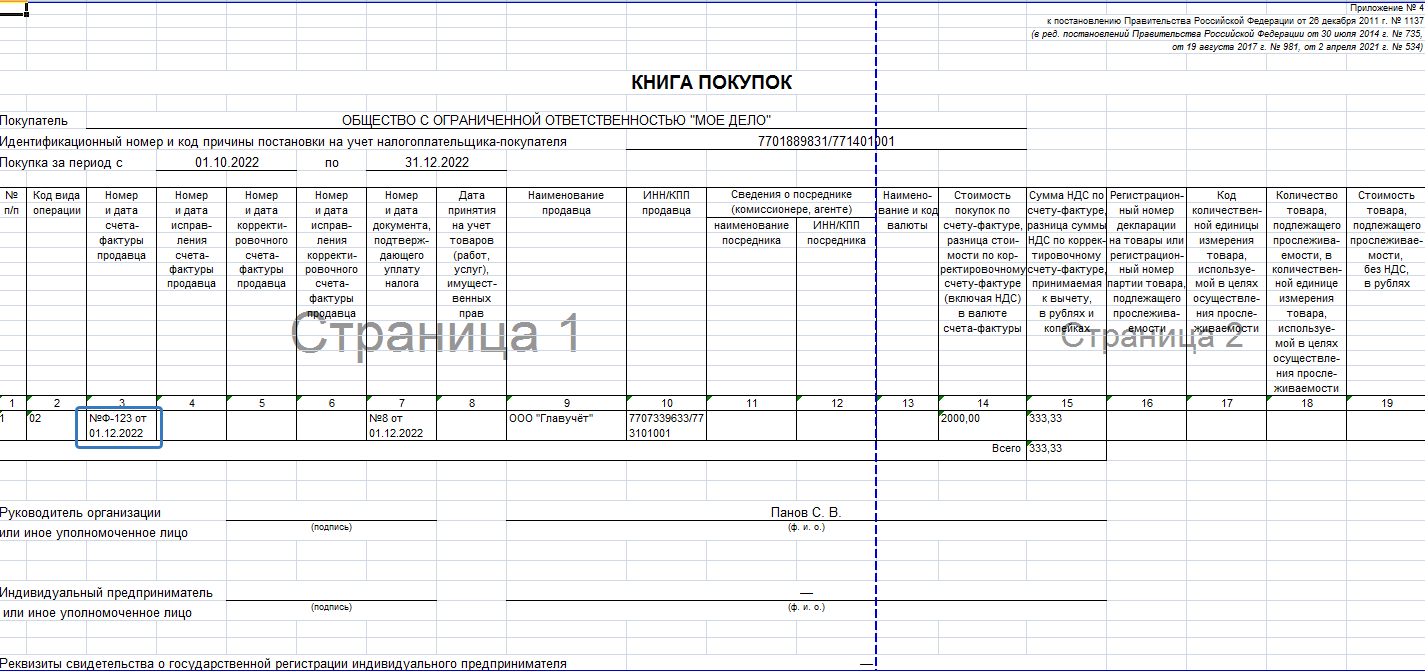 По всем созданным документам при скачивании реестра, содержащего документы прошлого периода, появляются графы «Дата забытого документа» и «Номер забытого документа».