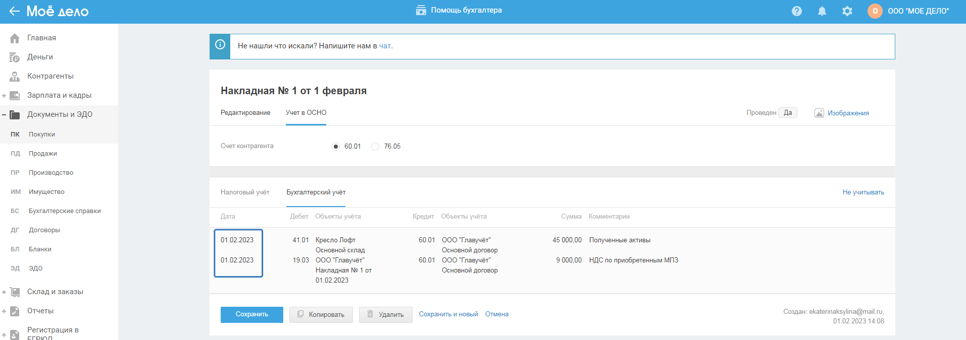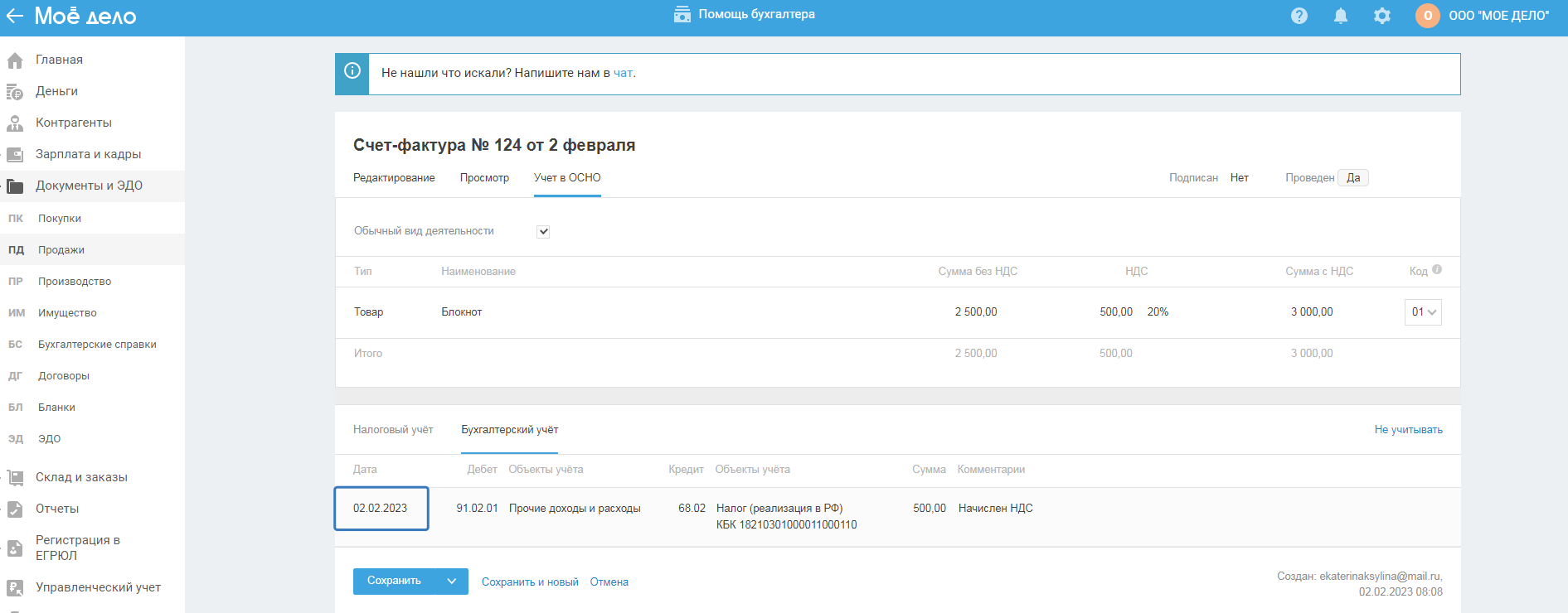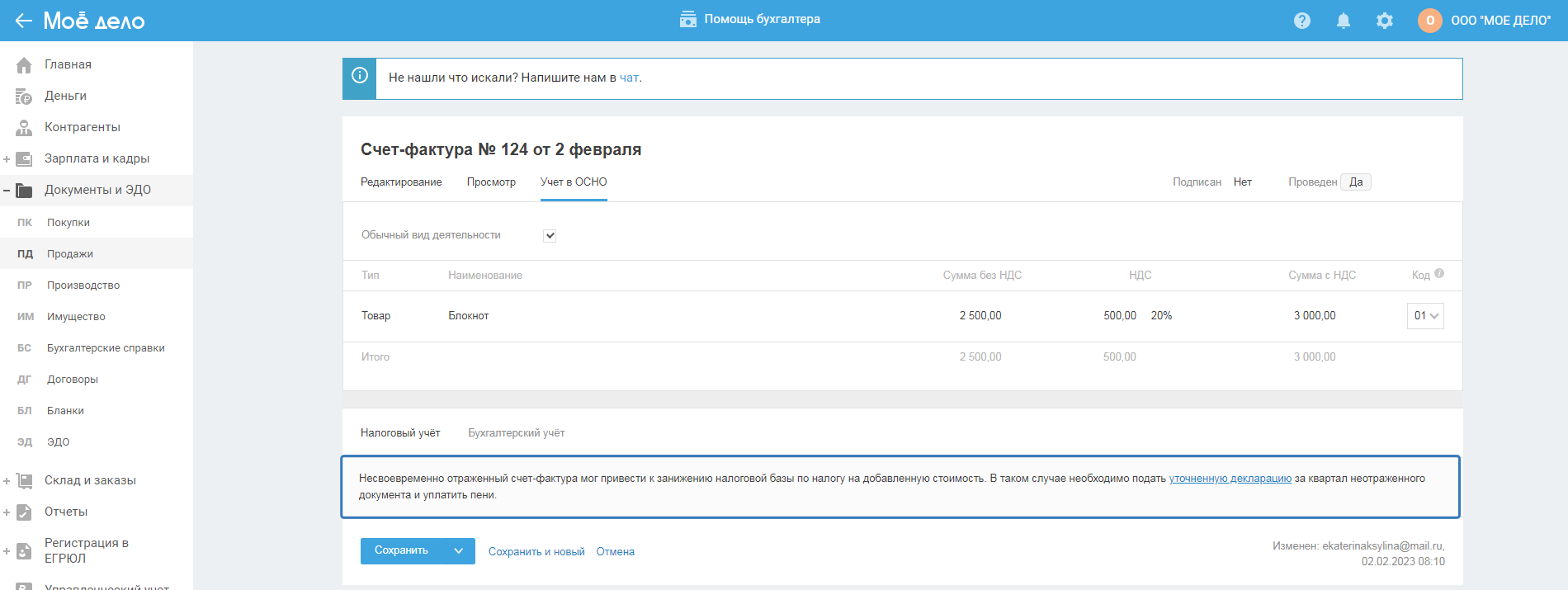 - в строке «счет-фактура» (на тарифах ОСНО) нет возможности создать новый счет-фактура, при этом, для выбора будет доступен счет-фактура созданный в сервисе в разделе «Документы и ЭДО - Покупки».