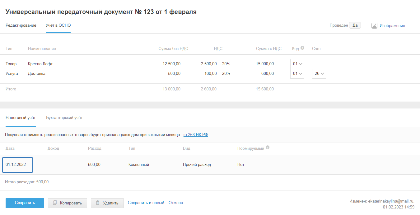 заполнение остальных полей аналогично как в УПД на продажу, при этом на тарифах ОСНО и статусе УПД 1