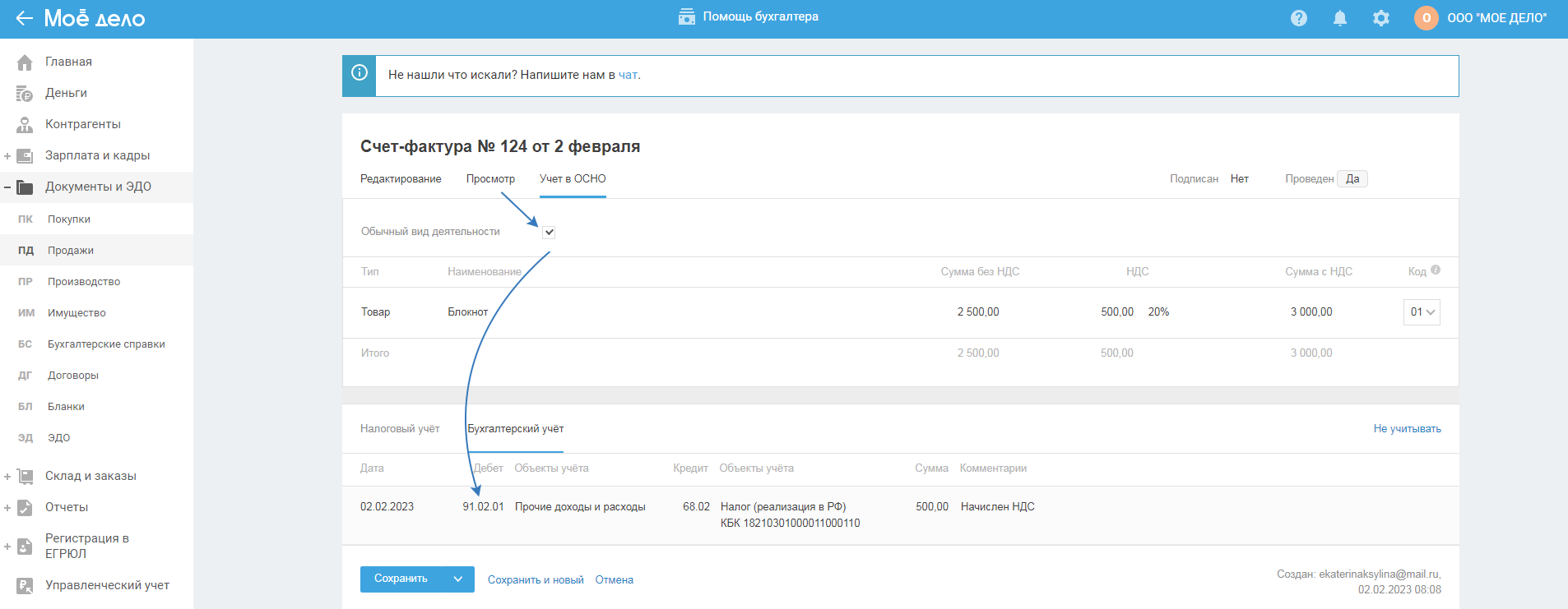 на тарифах ОСНО и статусе УПД 2 записи в книгах продаж и покупок, а также в декларации по НДС формируются на основе связанного обычного счета-фактуры.