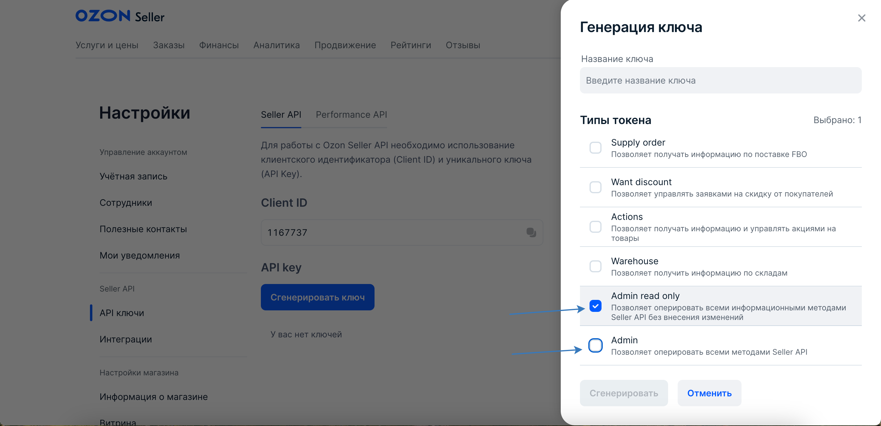 Подробная инструкция, как сгенерировать API ключ в кабинете Ozon: