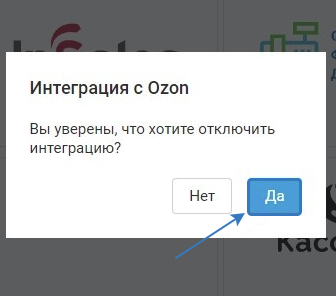 Для отключения интеграции с маркеплейсом пройдите в раздел «Реквизиты — Интеграция с партнёрами», выберите нужный маркетплейс и нажмите на кнопку «Отключить»: