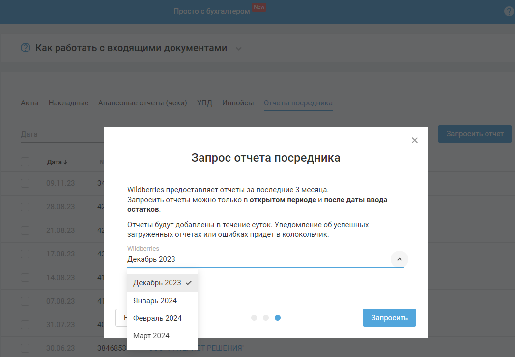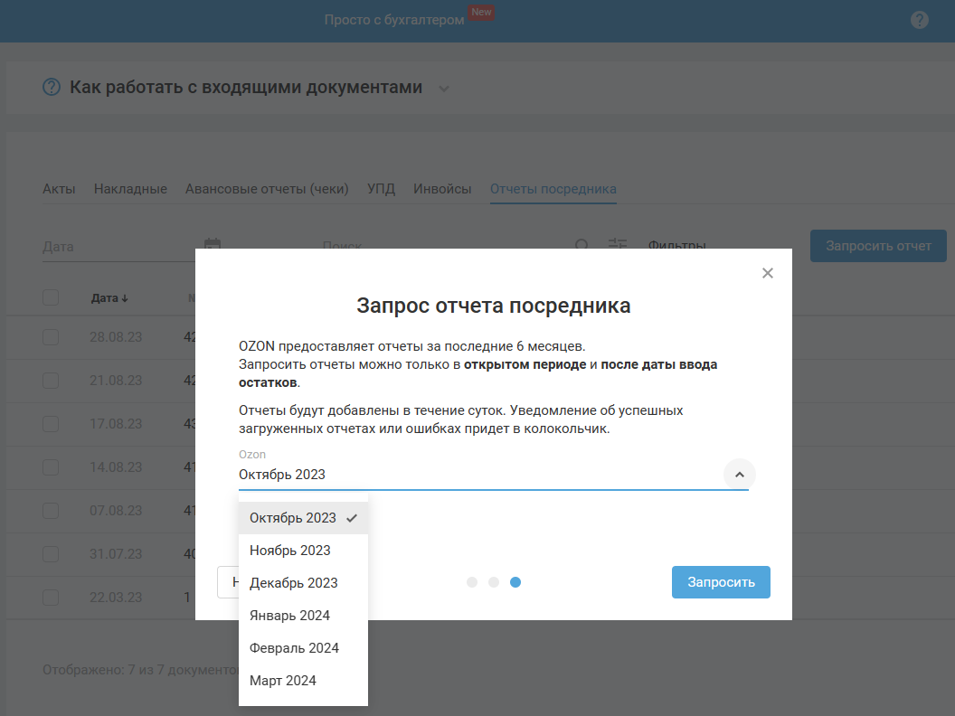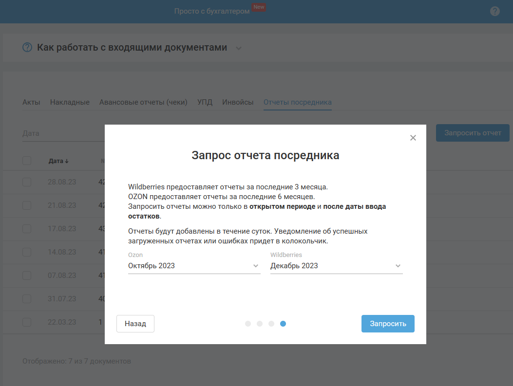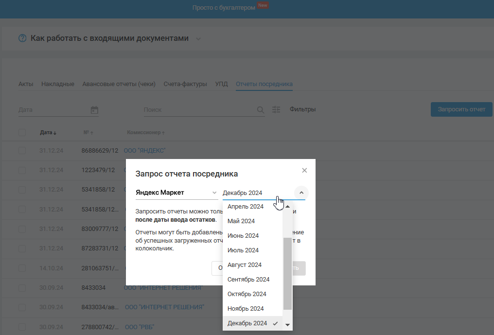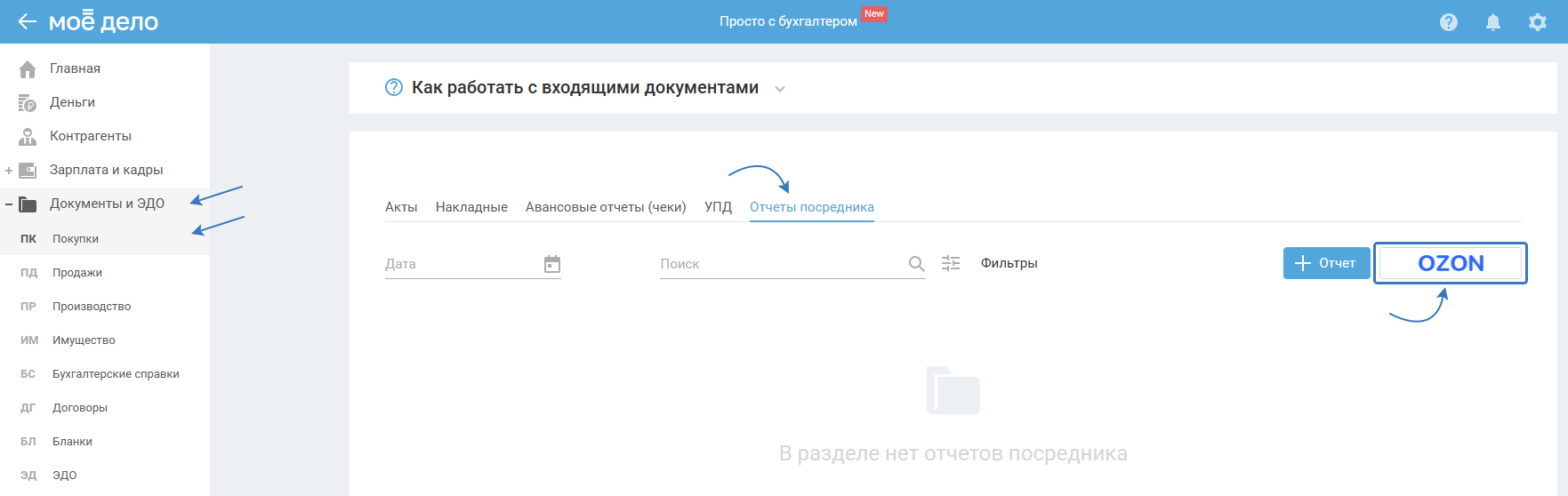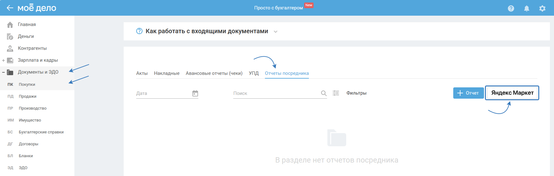 Чтобы просмотреть результат, перейдите в раздел «Документы и ЭДО — Покупки — Отчёты посредника».