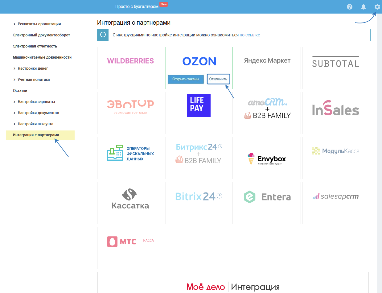Подключение в разделе «Реквизиты — Интеграция с партнёрами»