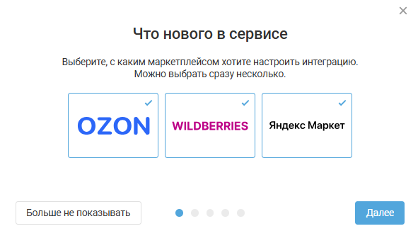 Подключив интеграцию с маркеплейсами, вы сможете: