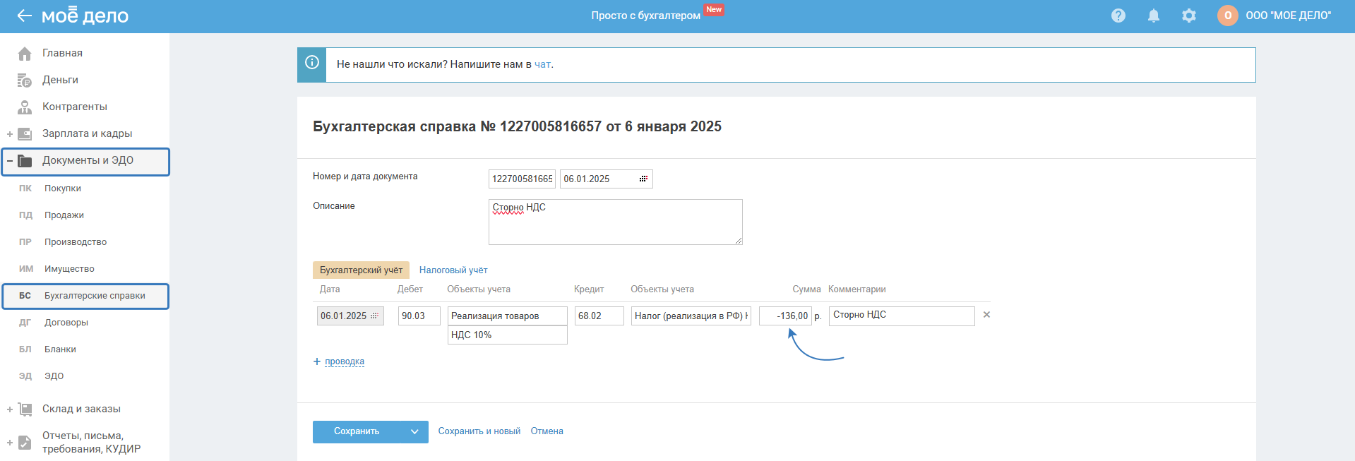 Не забудьте, пожалуйста, выставить печатный УКД или корректировочный счёт-фактуру покупателю.