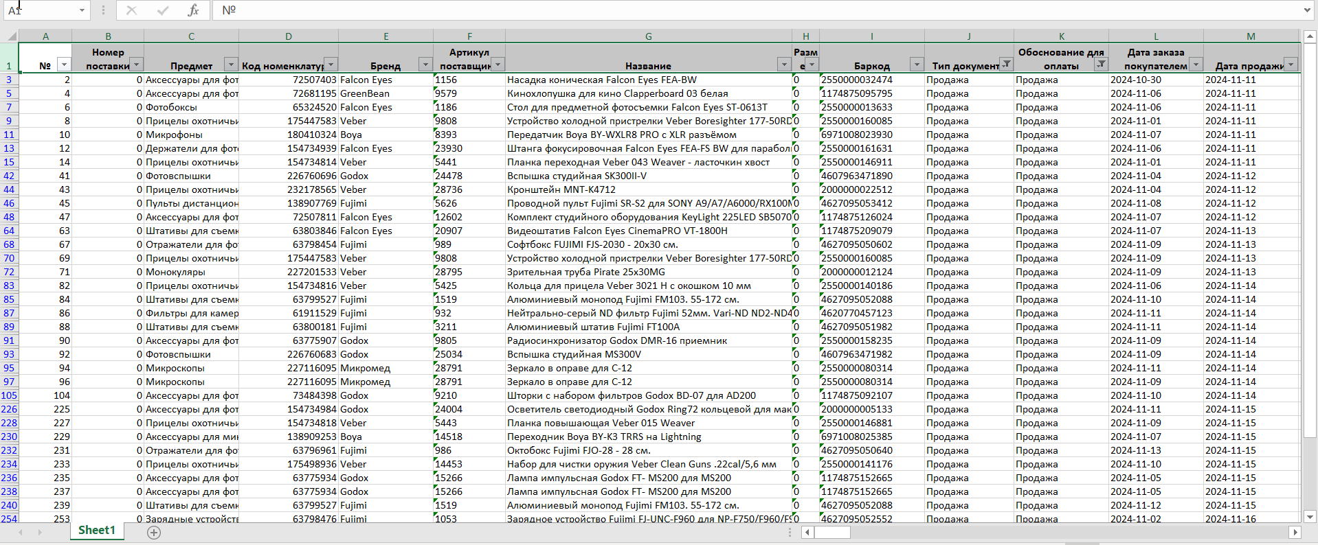 Для удобства сделан фильтр, по которому вы можете искать конкретные позиции в списке реализованных товаров, и при необходимости их корректировать: