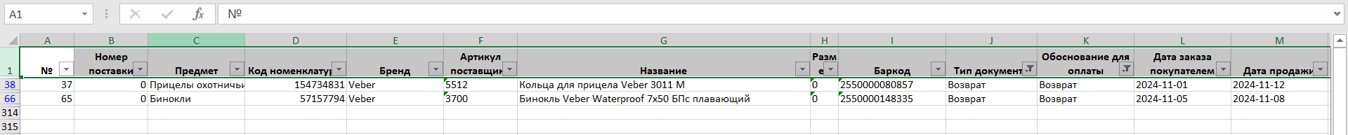 Для удобства сделан фильтр, по которому вы можете искать конкретные позиции в списке возвращённых товаров, и при необходимости их корректировать: