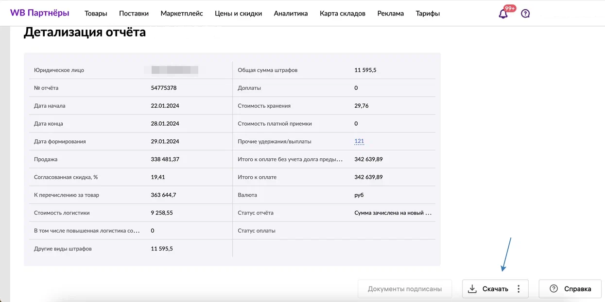 Комиссия маркетплейса рассчитывается на основании «Отчёта по оферте» еженедельного отчёта и детализации в личном кабинете Wildberries.