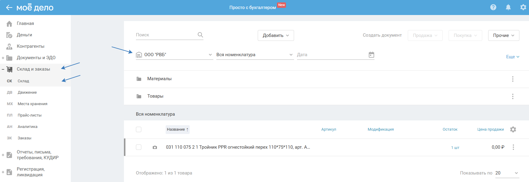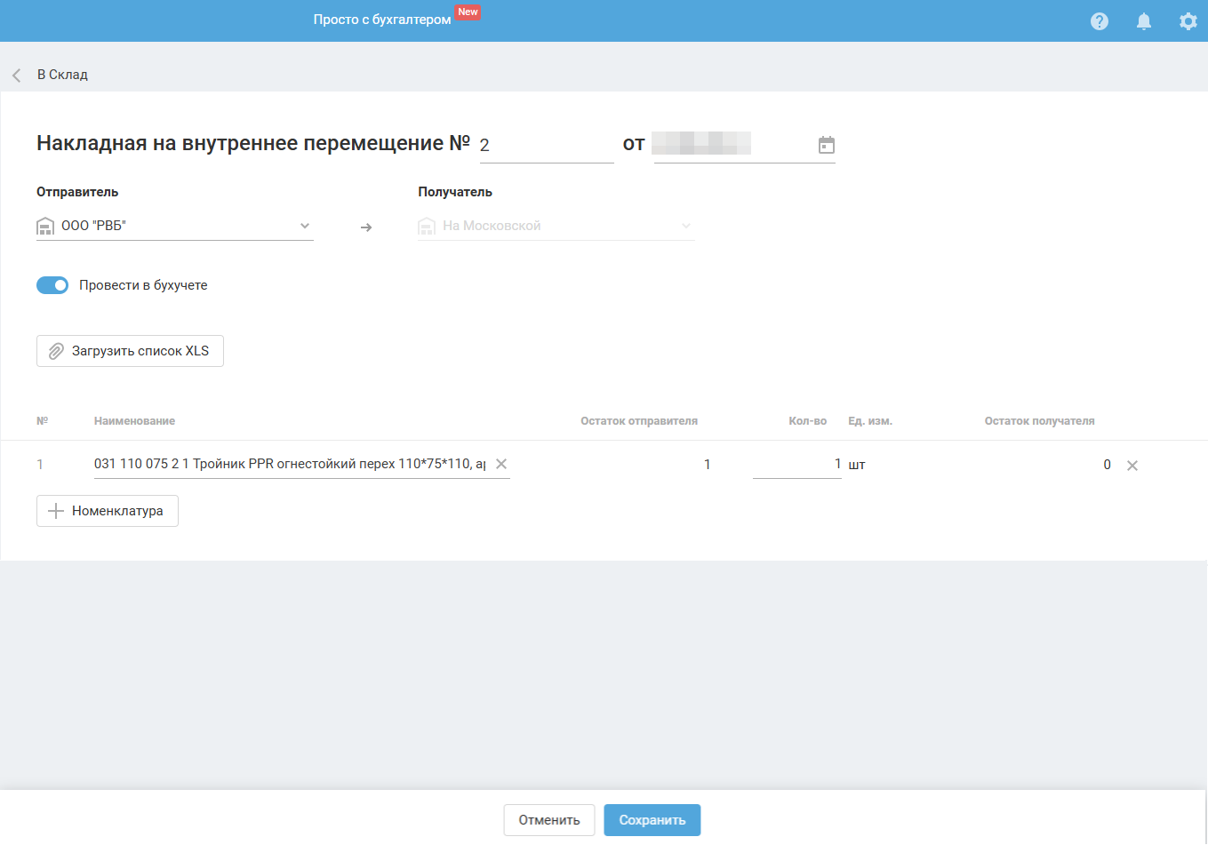 А после также по УПД на перемещение — перенести товар на склад ООО «РВБ»: