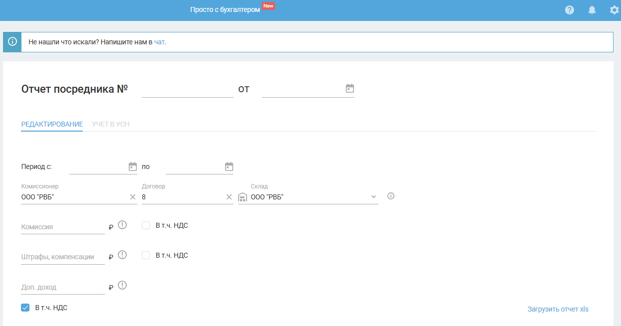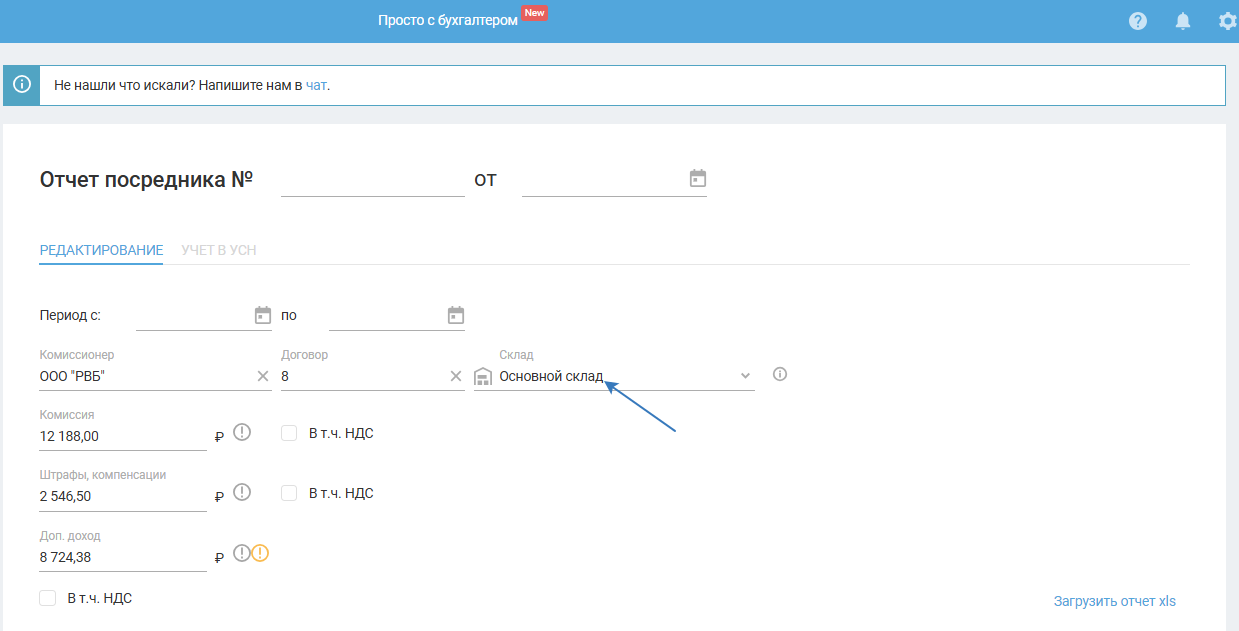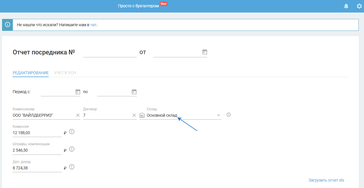 Т.е. если у вас в отчёте есть возврат товара, но данного товара нет ни в одном отчёте о реализации (ни в текущем, ни в загруженных ранее), то автоматически будет создан «Отчёт посредника» только с той реализацией, по которой не найден возврат.