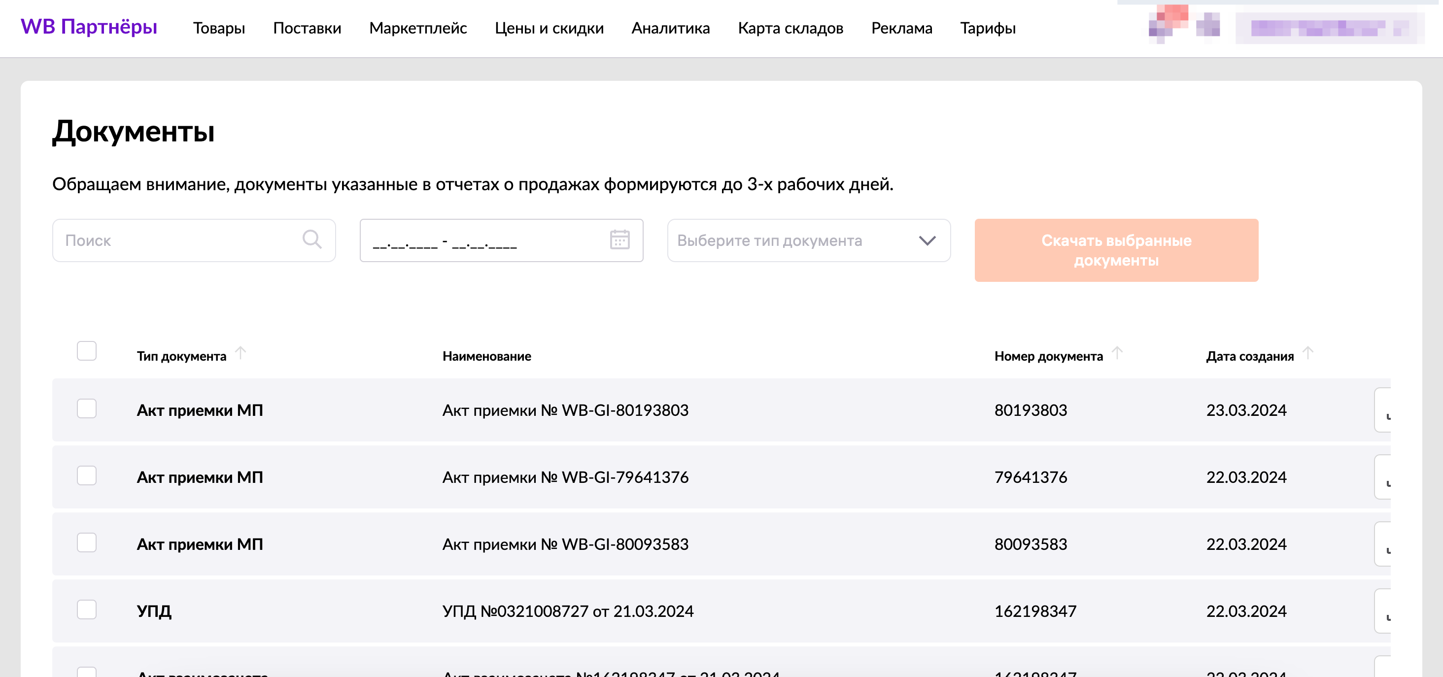 - УПД о перемещении на склад маркетплейса появляются в течении часа;