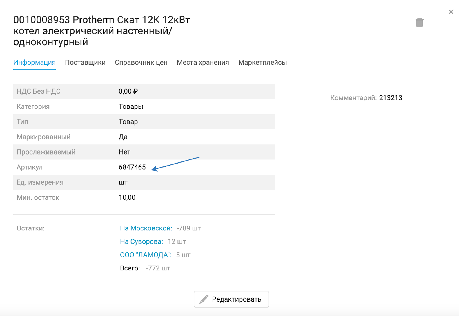Если у вас заполнены товары, то рекомендуем проверить заполнение поля «Артикул». Если артикула нет, то его нужно указать во избежании дубликатов.