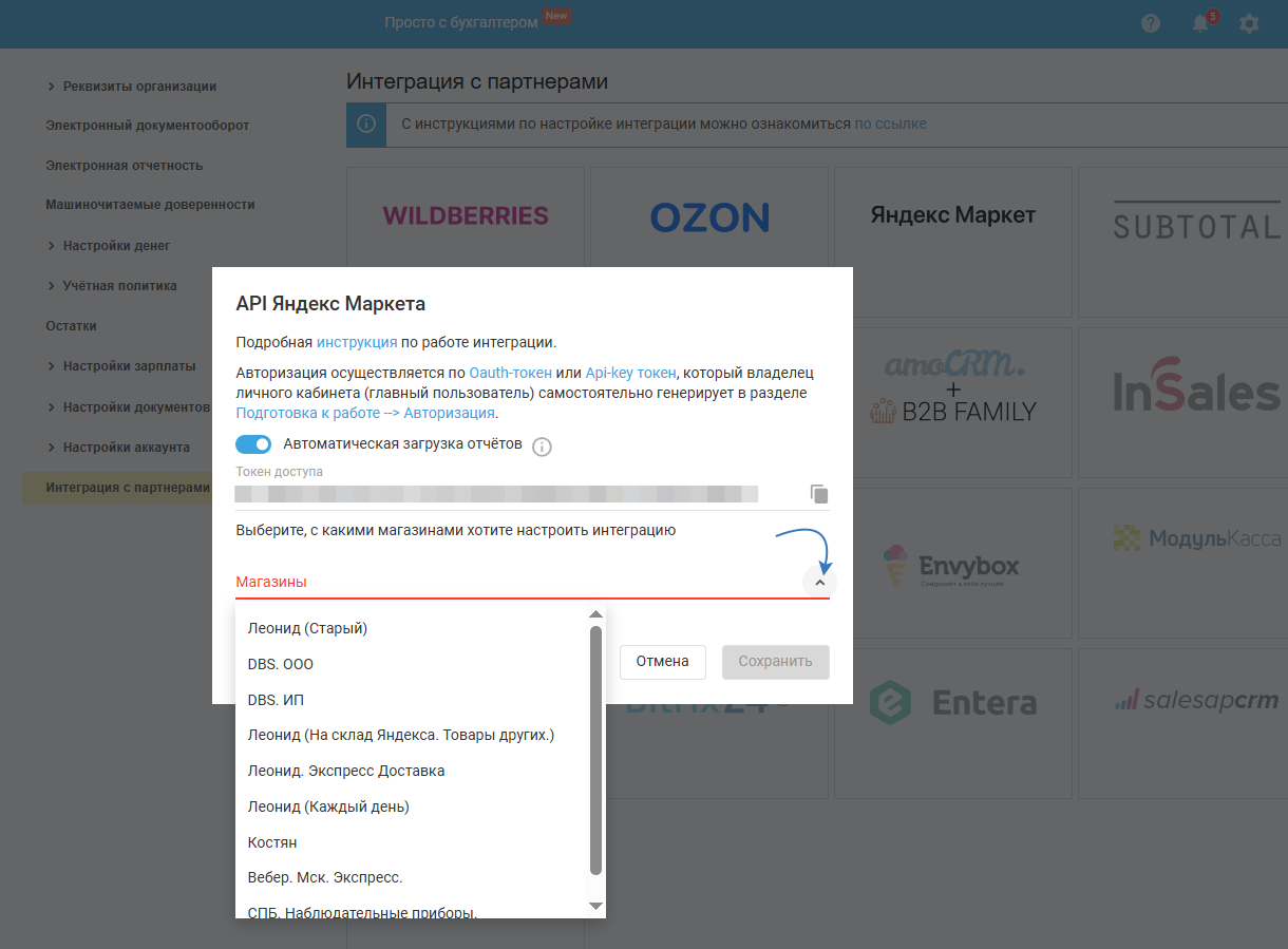 3. При подключении интеграции вы можете включить настройку «Автоматическая загрузка отчётов». С помощью данной настройки отчёты по реализации будут загружаться автоматически в сервисе в «Документы и ЭДО — Покупки — Отчёты посредника».