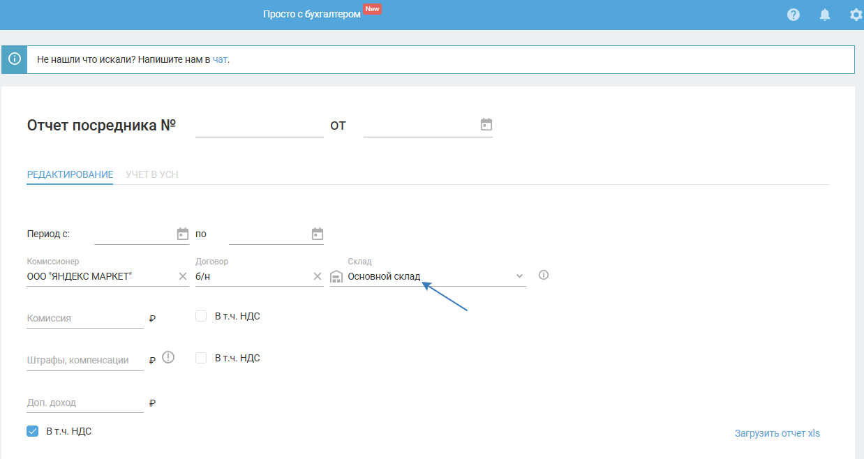 Т.е. если у вас в отчёте есть возврат товара, но данного товара нет ни в одном отчёте о реализации (ни в текущем, ни в загруженных ранее), то автоматически будет создан «Отчёт посредника» только с той реализацией, по которой не найден возврат.