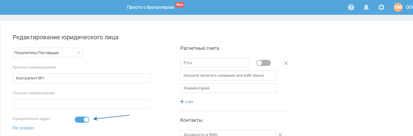 3) переведите тумблер там, где написано «Юридический адрес» в статус включено: