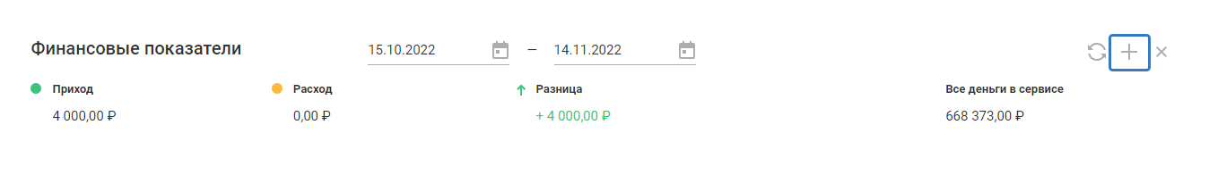 По горизонтали можно увидеть приход, расход и разницу между ними в указанный промежуток дат.