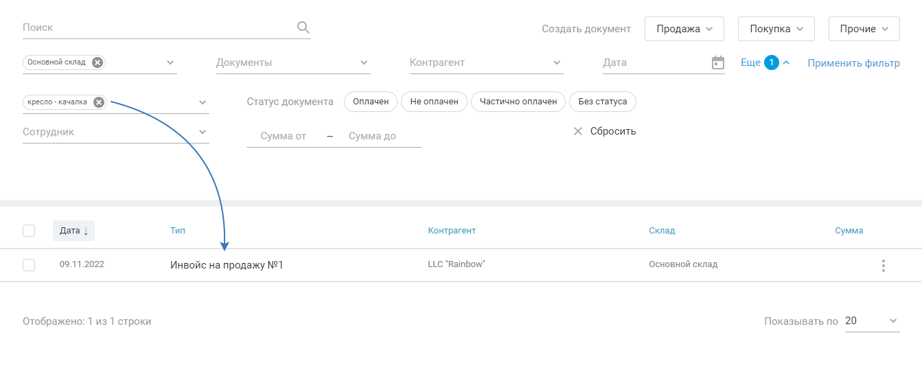 По полям «дата», «номер», «статус», «сумма», «контрагент» вы можете указать сортировку.
