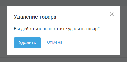 1. Если с удаляемым товаром нет связанных документов, тогда в появившемся окне «Удаление товара», нажмите нажмите на кнопку «Удалить»: