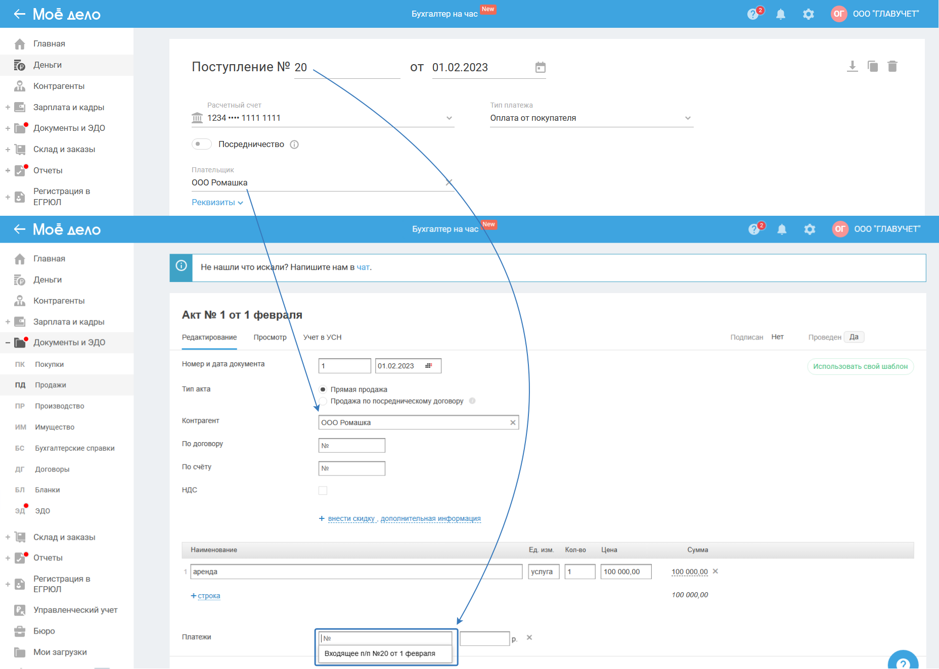 Как связать документ (договор, счёт, акт, накладную, УПД) и оплату (п/п, РКО, ПКО)