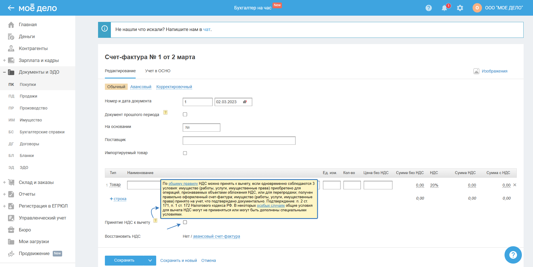 Если документ находится в закрытом периоде, то вы не сможете отредактировать на данной странице НДС, который принят к вычету по этому документу.