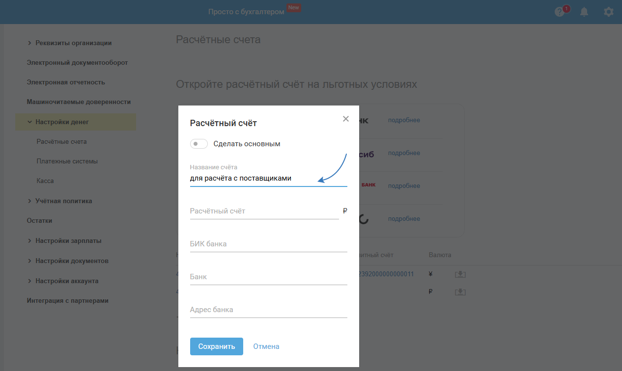 Расчетные счета и интеграции