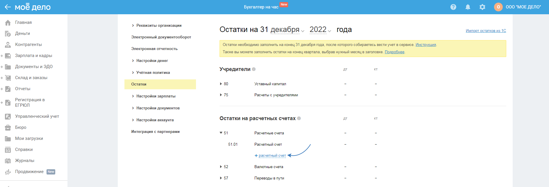 Остаток по расчётным счетам перенесён автоматически на основании данных старого личного кабинета. При необходимости вы можете его изменить. Как?