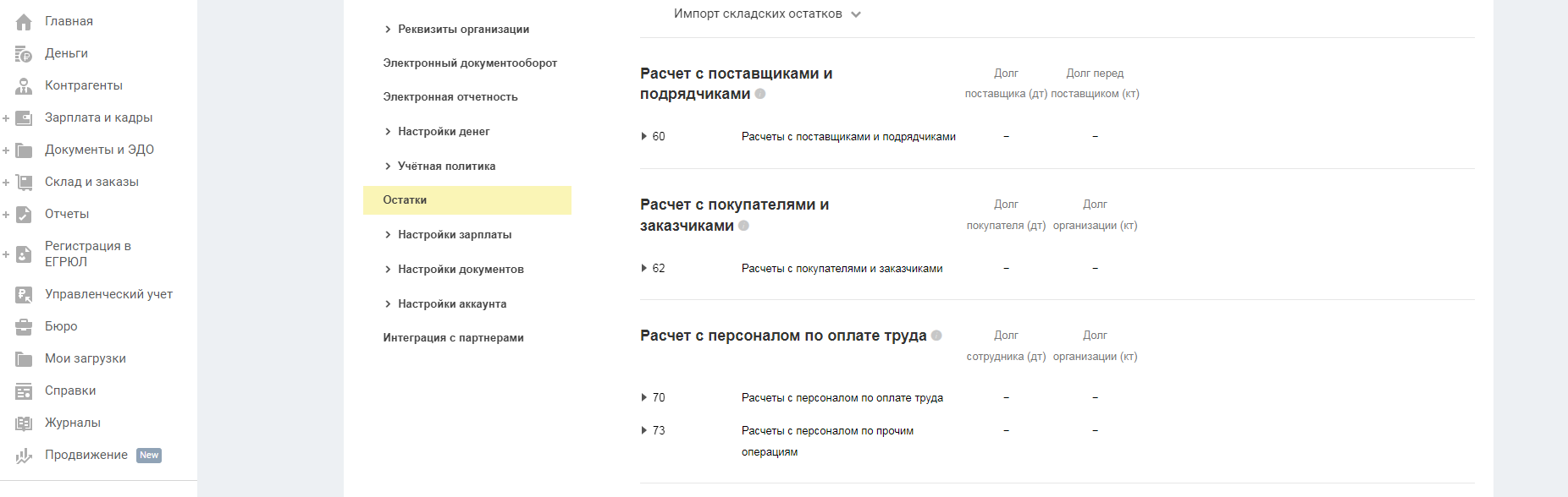 Инструкция по внесению остатков для ИП доступна по ссылке. Для того чтобы узнать задолженность по контрагенту, вы можете сформировать акт сверки в старом личном кабинете и указать ее в новом личном кабинете в разделе «Реквизиты» - «Остатки». С инструкцией по внесению остатков для ООО можно ознакомиться здесь. - Добавить начисления сотрудникам (командировки, больничные и пособия, прогулы).