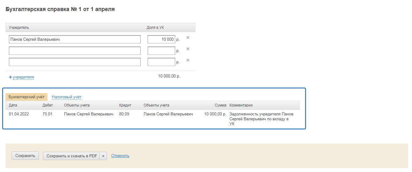 - не начислен уставный капитал, при этом в разделе "Деньги" отражена операция с типом "Взнос в уставный капитал" ;