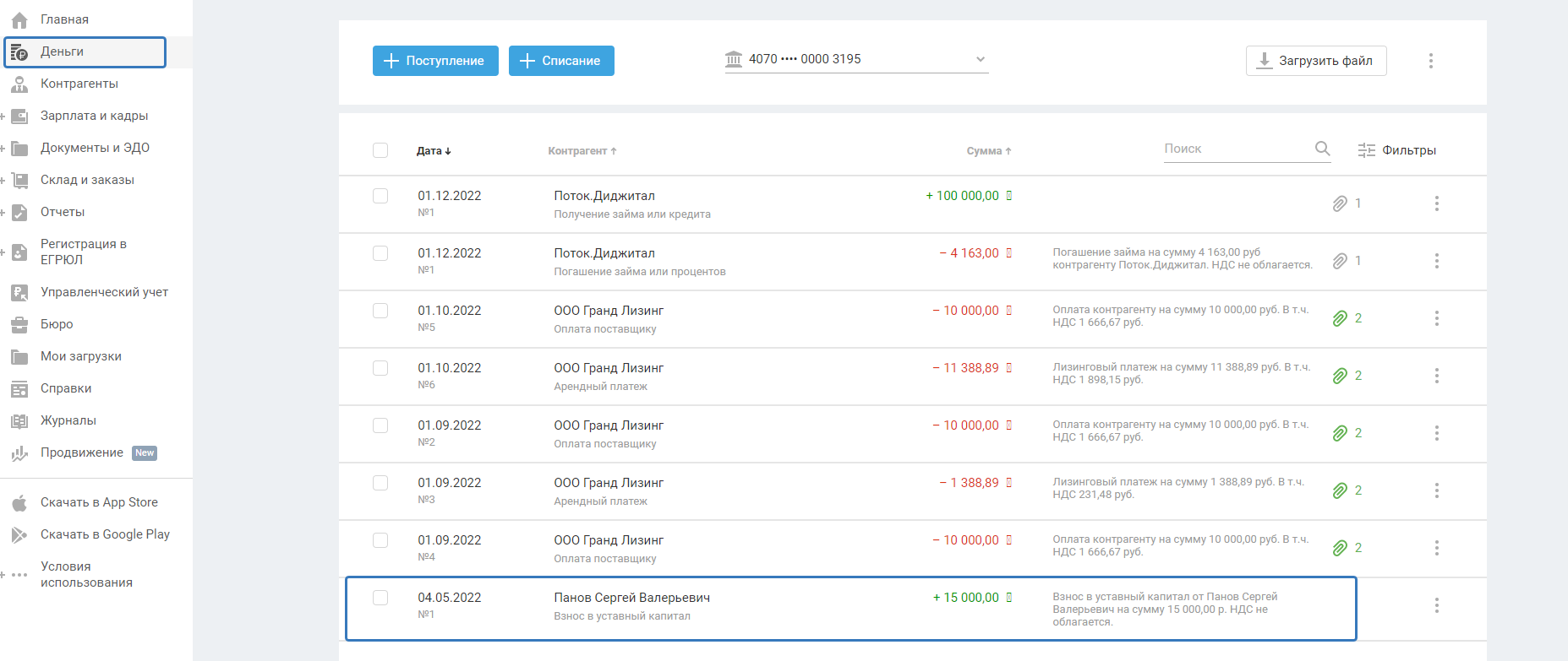 - отсутствует начисления с типом "Дивиденды" , при этом сумма была внесена в раздел "Деньги" с типом "Выплаты физ. лицам" - "Дивиденды" ;