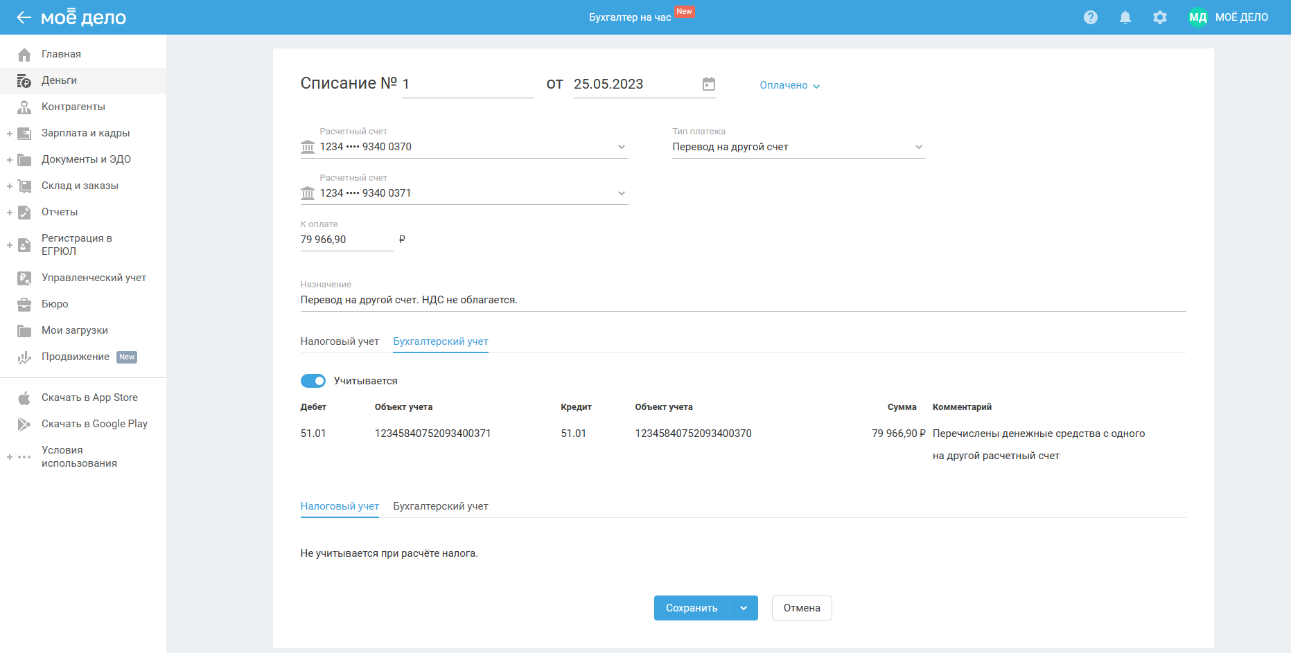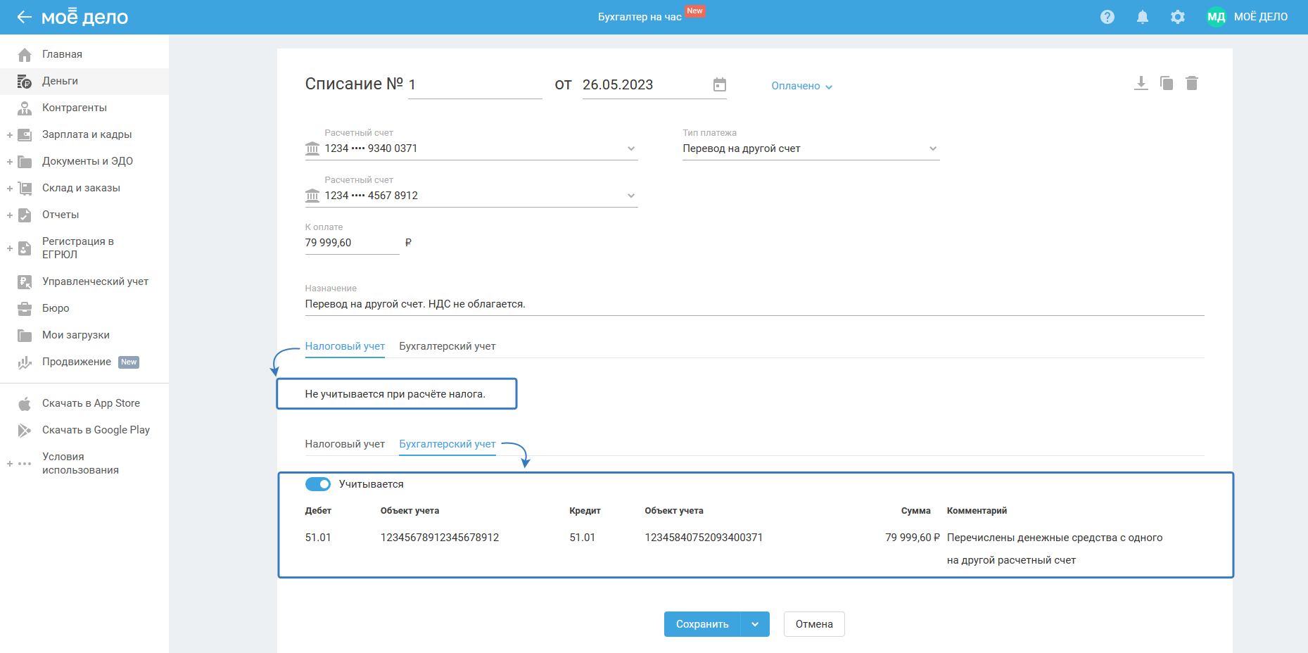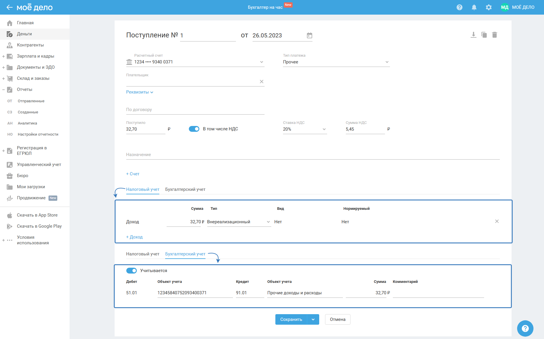 Бухгалтерский учёт проставляется автоматически: