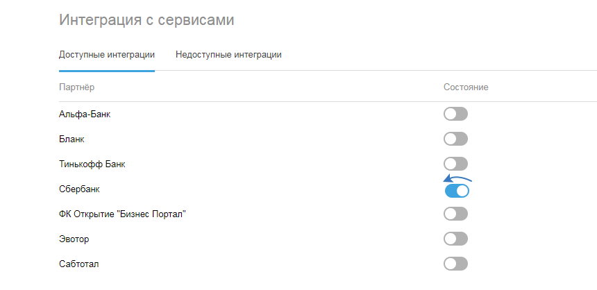 5. В блоке «Интеграция с сервисами» и переподключите интеграцию со Сбербанком по инструкции: