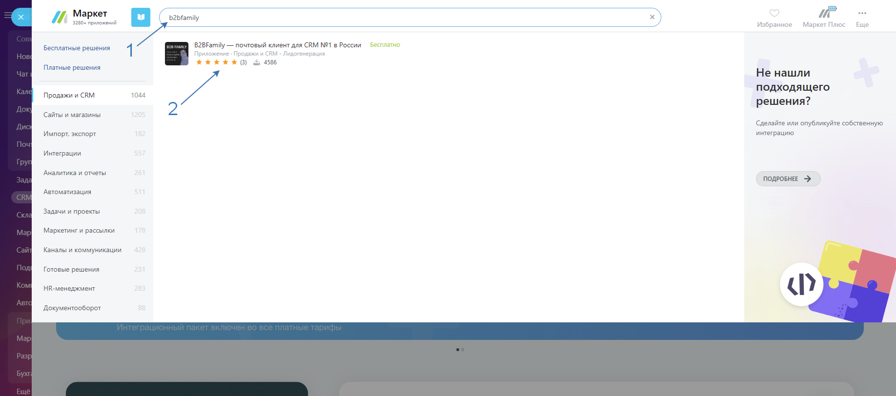В поисковой строке написать «b2bFamily» и далее кликнуть на полученный результат: