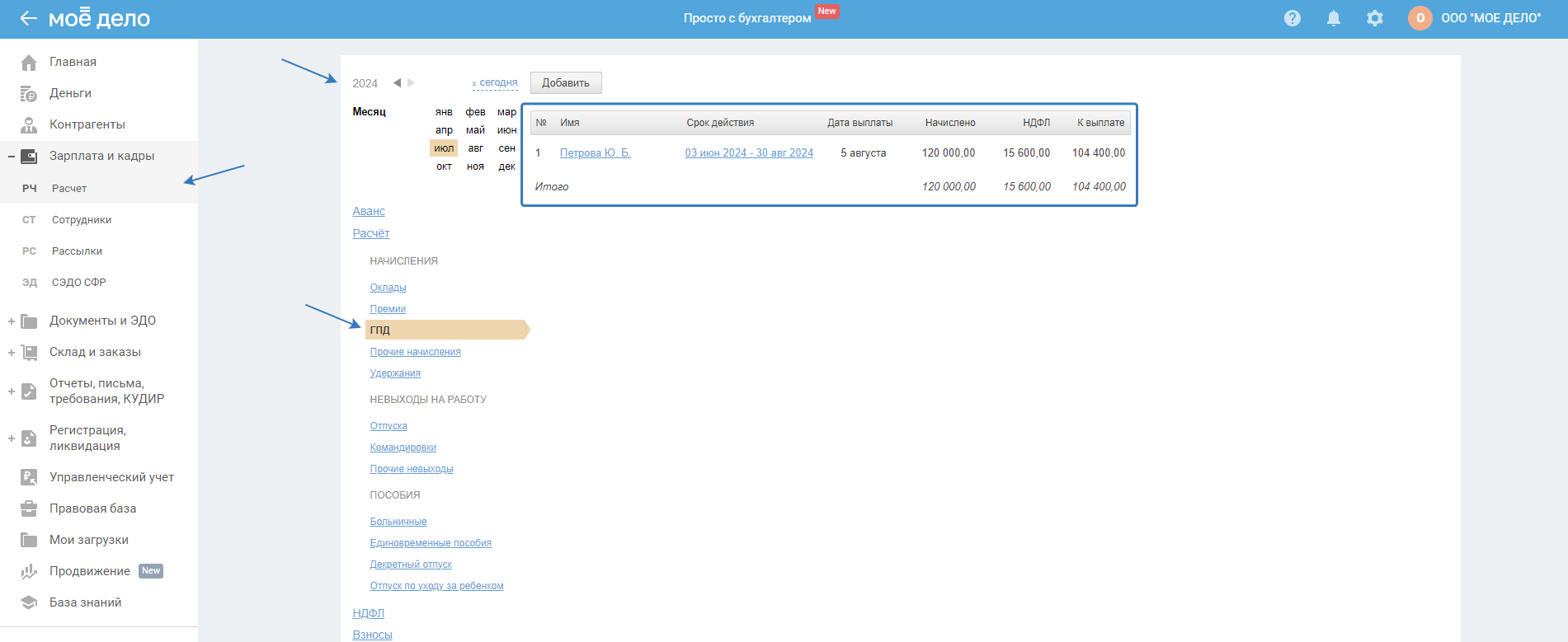 Поэтому чтобы начисление по договору в сервисе отразилось в нужном вам месяце — дату расчёта укажите на сумму и месяцем подписания акта, при этом оплата по ГПД значения не имеет.