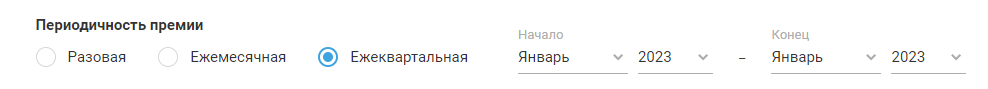 - тип — указывается тип премии (единовременная, ежемесячная, ежеквартальная).