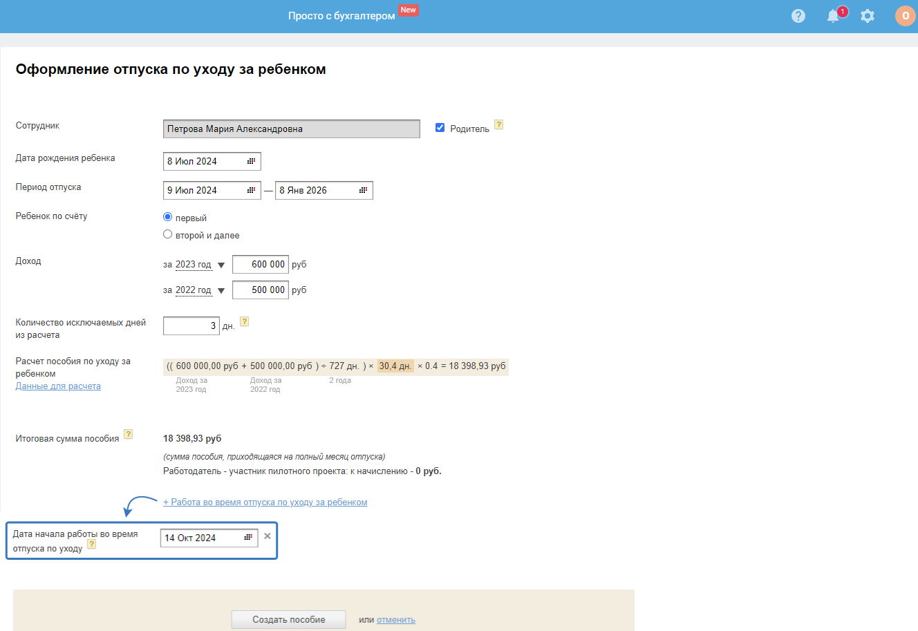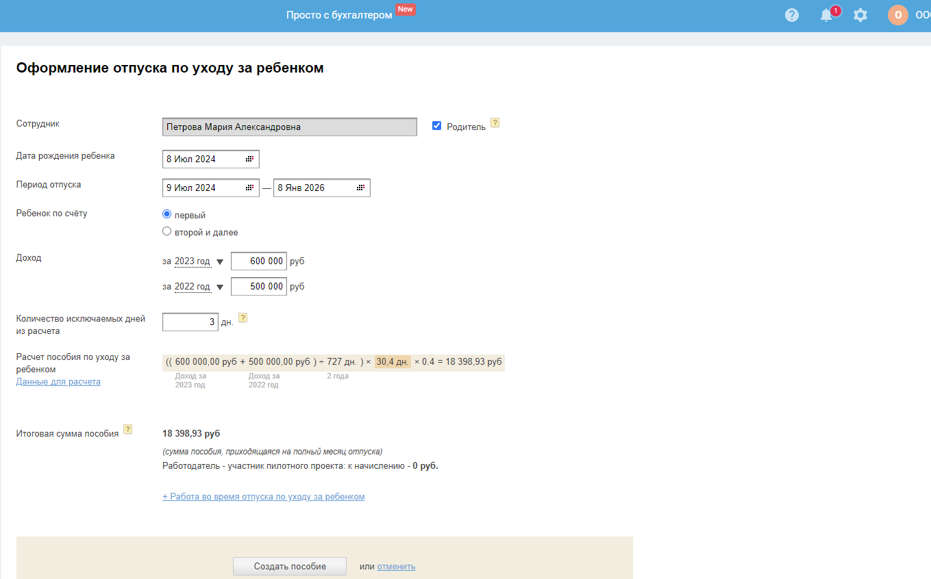 После заполнения нажмите кнопку «Создать пособие».