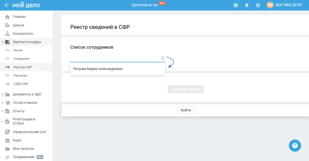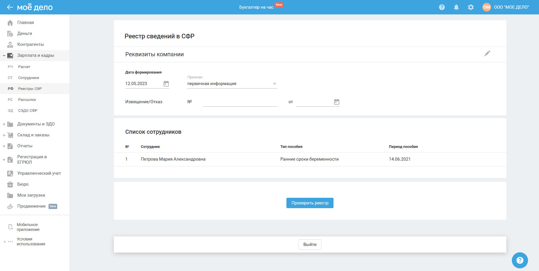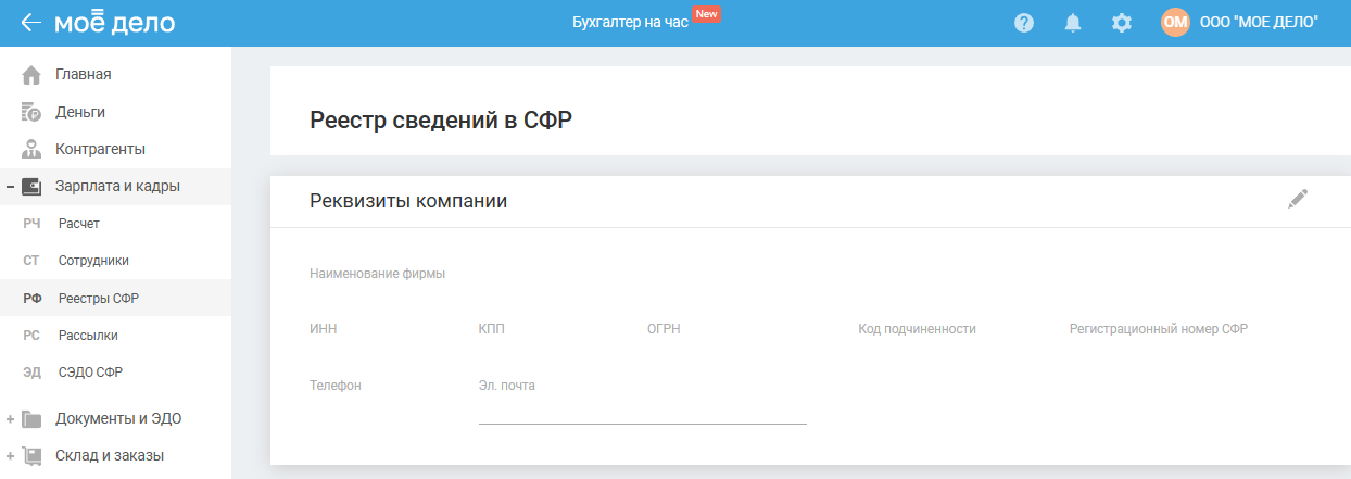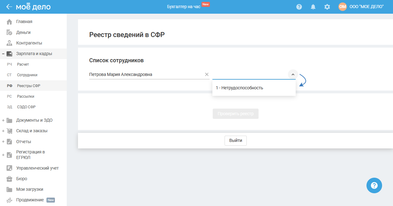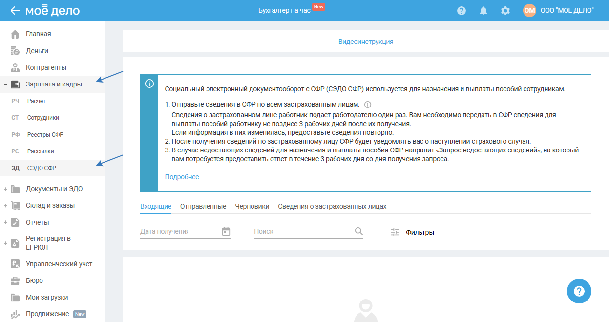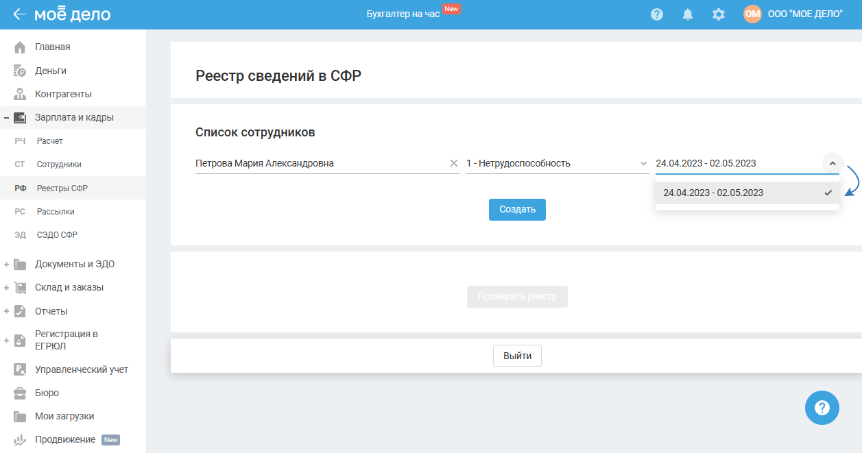 Раздел доступен для ИП и ООО в пилотном проекте СФР.