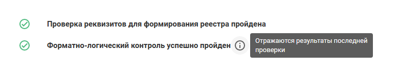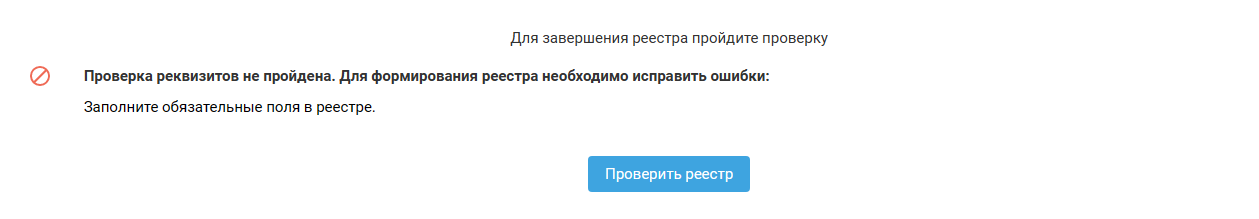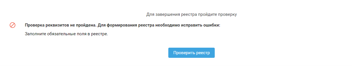 — если реестр не прошёл проверку, то на экран будут выведены ошибки / предупреждения для их устранения: