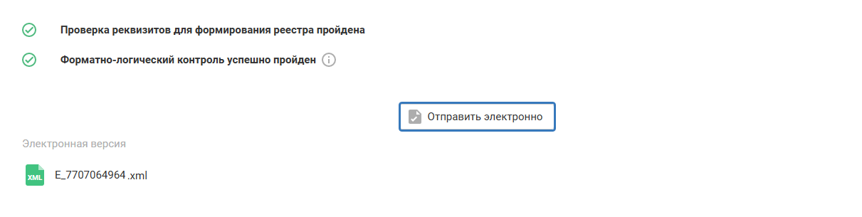 При успешной проверке реестра в сервисе появляется возможность отправить документ электронно.