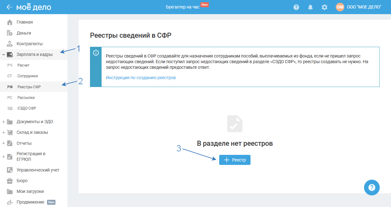 Раздел «Зарплата и кадры — Реестры СФР».