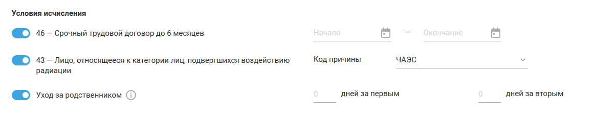 2) Условия исчисления. Включите тумблер, если: