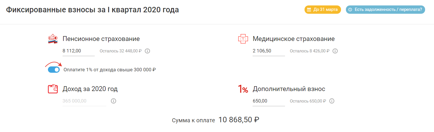 Подробнее о том, как рассчитываются суммы взносов, смотрите в разделе справочная информация.