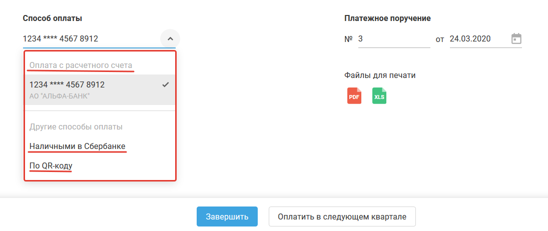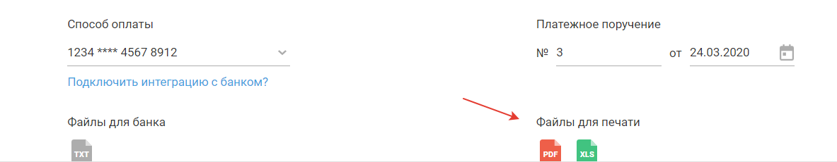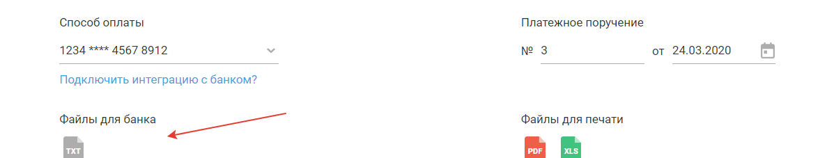 Если ранее Вы подключили интеграцию с банком-партнером, то кроме описанных выше способов оплаты, будет доступен экспорт платежных поручений в клиент-банк.